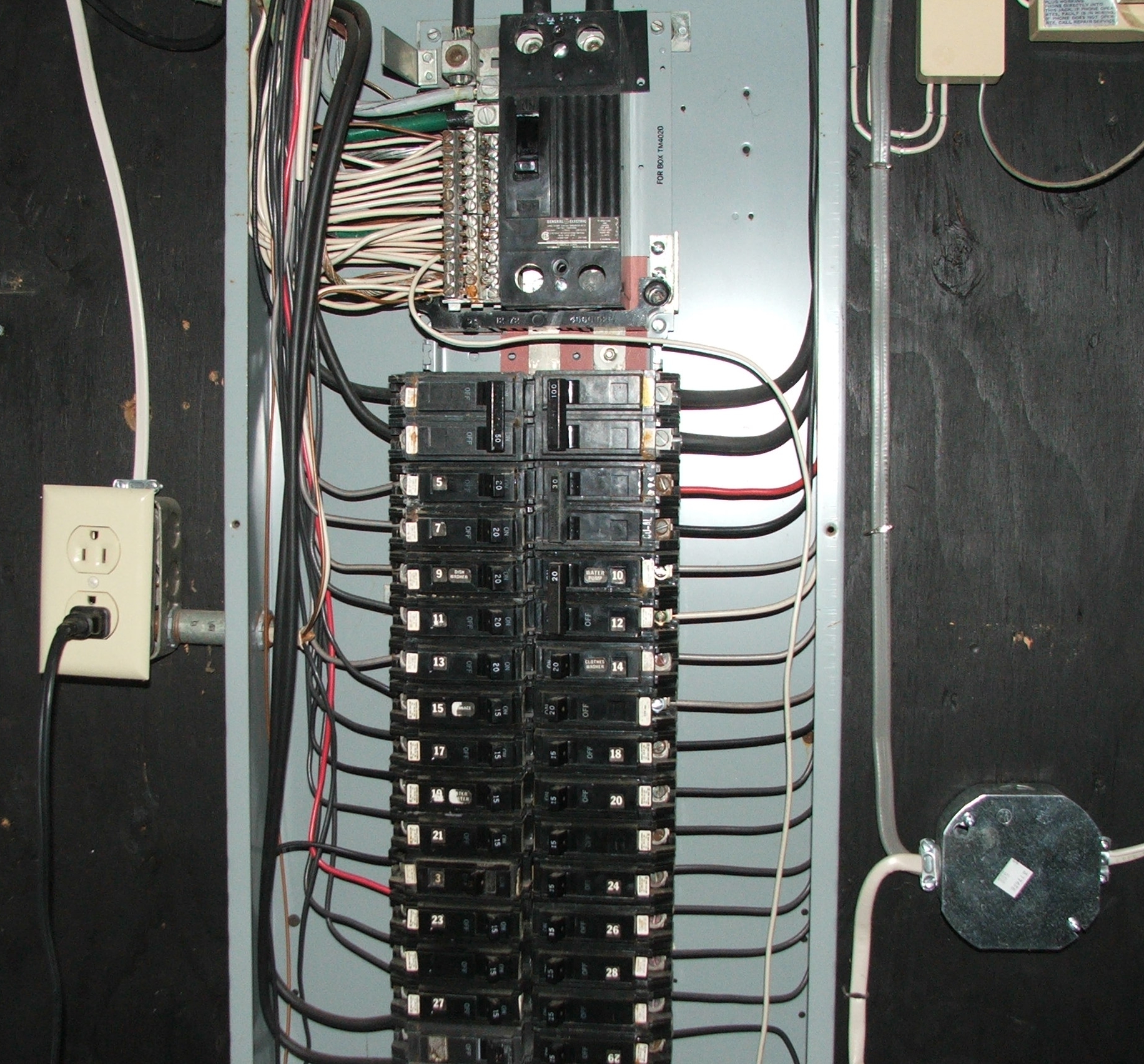 This is where the electricity from the outside is distributed to different parts of the house or apartment. The circuit breakers connect from a common power bus to individual wires in the house.