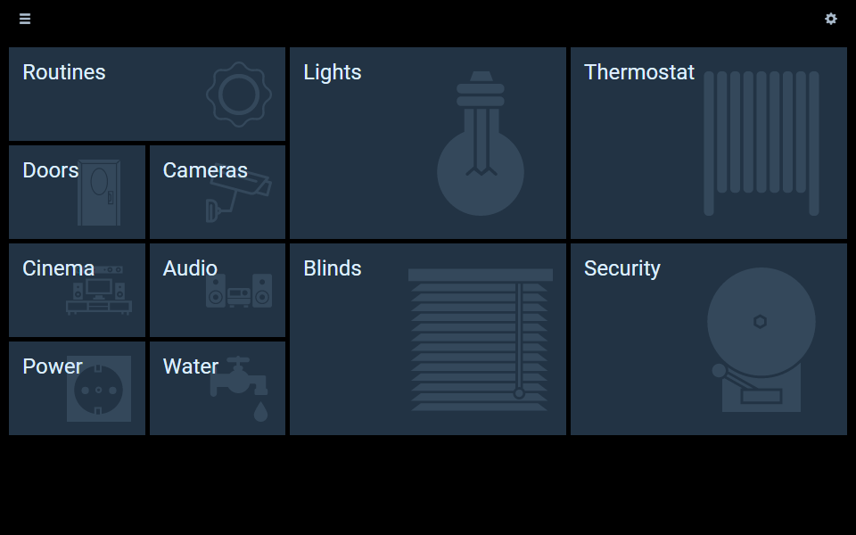 The next part of the interface is the user interface. This is a drag and drop interface which allows you to define your own interface. Instructions are available at Designing dashboard interfaces with HABPanel. Since these instructions are pretty good I will not try to explain them here, but here is an example.