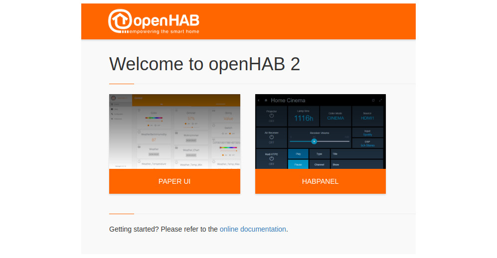 Now that the OpenHAB is installed we can call up the application by using a web browser at this address