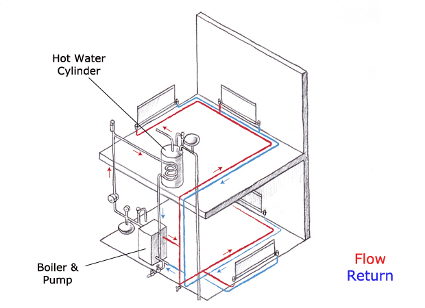 First we should understand about a heading/cooling system. I will discuss a circulating hot water system as seen here.