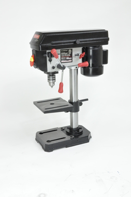 The drill press comes in table mount and flour mount. The motors are much stronger, the speed is adjusted by belts in the top. The table moves up and down to accommodate the work. A machine like this can drill steel, cut large circles, drive circular sanding drums, and even be used as a table router. The table can accommodate machine clamps to hold the work.