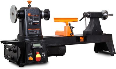 This tool spins the wood between the wood clamp and the spindle. The tool rest is used to brace the wood chisels used to cut the wood. This is typically how things like nobs, table legs, and bowls are made.