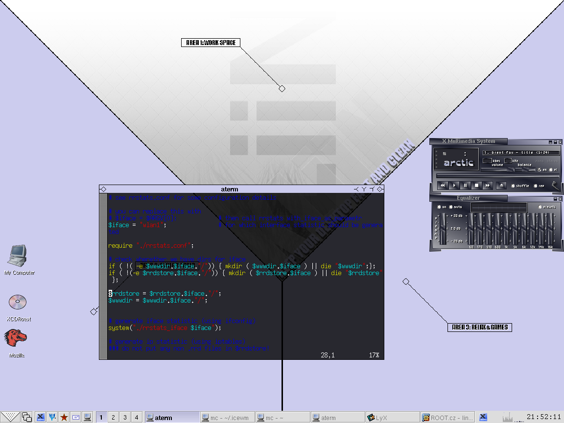 Customization can take many forms. You can customize the desktop of course, change the background, the color of the windows, or the screen saver. These things you can do in most modern operating systems. But that is only the tip of the iceberg so to speak. Here is a list of some of the things you could customize, but I should remind you, in Linux you can change EVERYTHING.