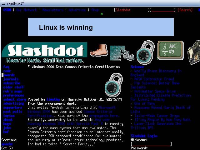 So we have seen the graphical web browsers, what about command line web browsers? Yes Linux has some non-graphical web browsers, which can be useful sometimes. For example the text web browser “lynx” has a dump option. Some times when I get an email which is all links and a little text I can take the HTML code and pass it through lynx to get a readable text rendition of the message. The command looks like lynx -dump file.html | less.