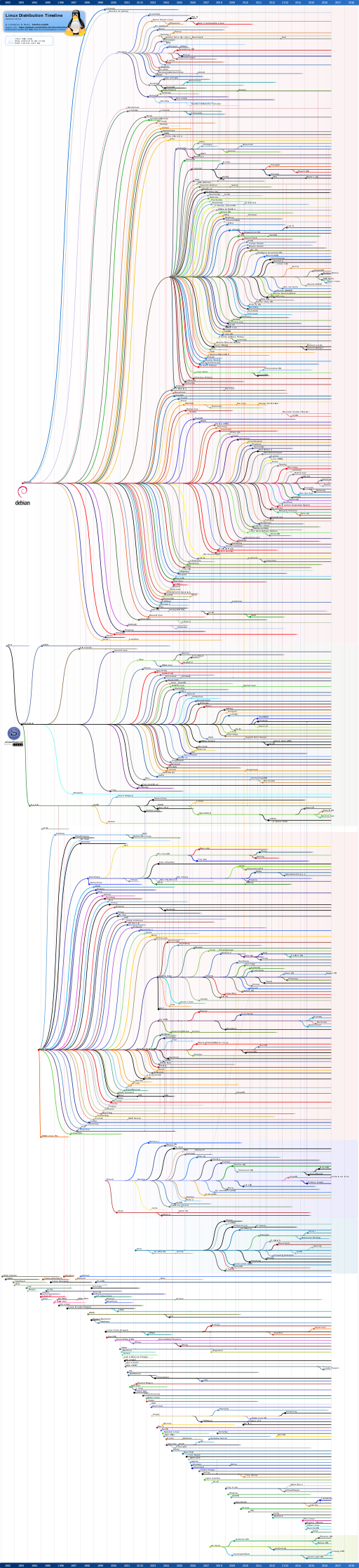 The following graphic is from Linux Distribution Timeline which is a good overview of the history of distributions.